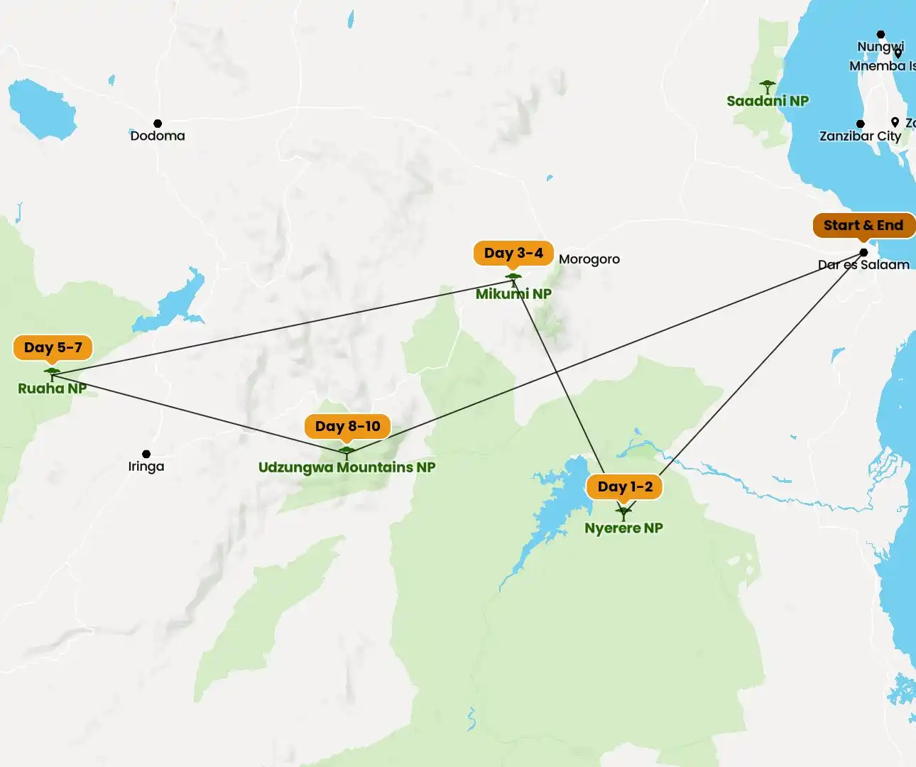 As the sun sets over the savannah, return to Ruaha River Lodge for dinner and overnight stay. Enjoy a warm meal, relax by the campfire, and reflect on another unforgettable day in one of Tanzania’s most authentic safari destinations.