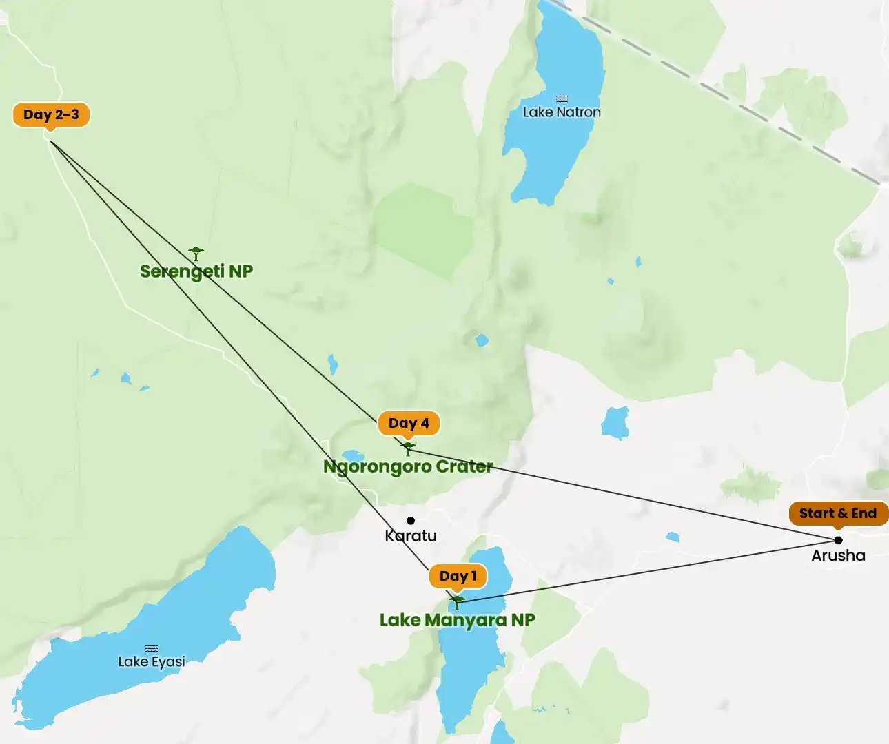 Enjoy a private game drive through diverse ecosystems, from dense forests to open plains and lakeshore landscapes. The park offers excellent photographic opportunities and a relaxed introduction to Tanzania’s wildlife.
