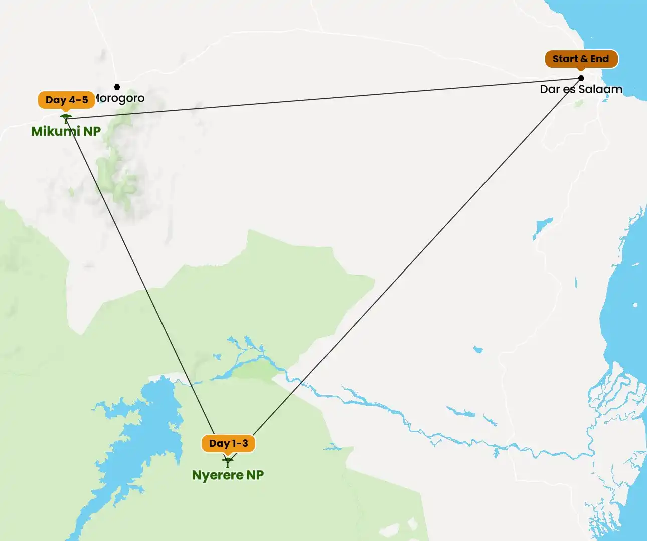 5-Day Southern Tanzania Safari: Nyerere (Selous) & Mikumi National Parks