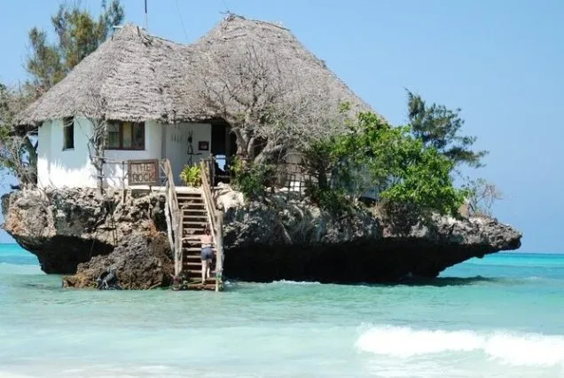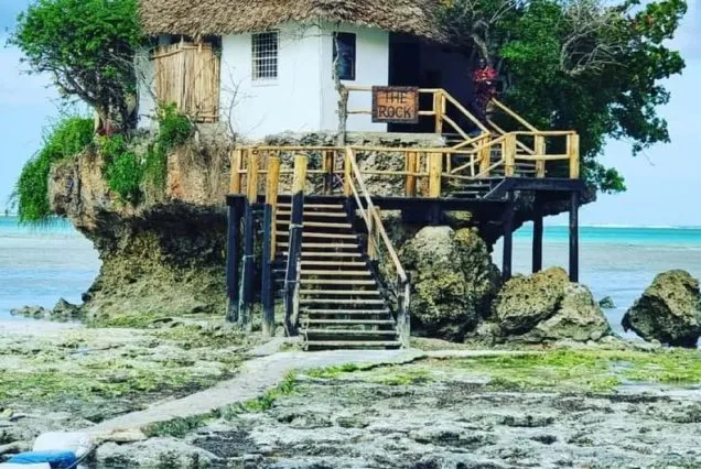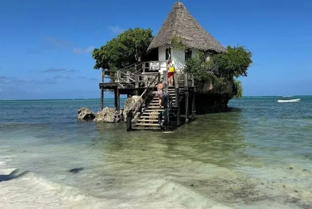 The journey then moves south to explore Kuza Cave, a hidden limestone cave with crystal-clear freshwater ideal for swimming and relaxation. Afterward, guests unwind on the white sands of Paje Beach, known for its laid-back atmosphere and turquoise waters. The day concludes with a visit to the iconic The Rock Restaurant, dramatically perched on a coral rock in the ocean, offering breathtaking views and a perfect photo opportunity to end a truly unforgettable Zanzibar adventure.